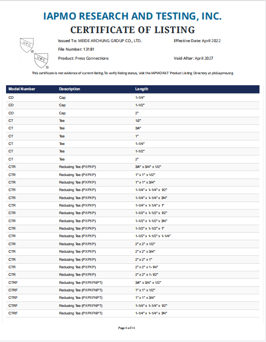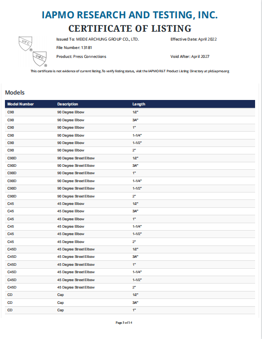 The grooved fittings, grooved mechnical tee (Fig. 3G), light duty grooved mechnical tee (Fig. 3GS), threaded mechnical tee (Fig. 3J), light duty threaded mechnical tee (Fig. 3JS), U-bolt mechnical tee (Fig. 3L), from Meide Group, have been CNBOP approved.