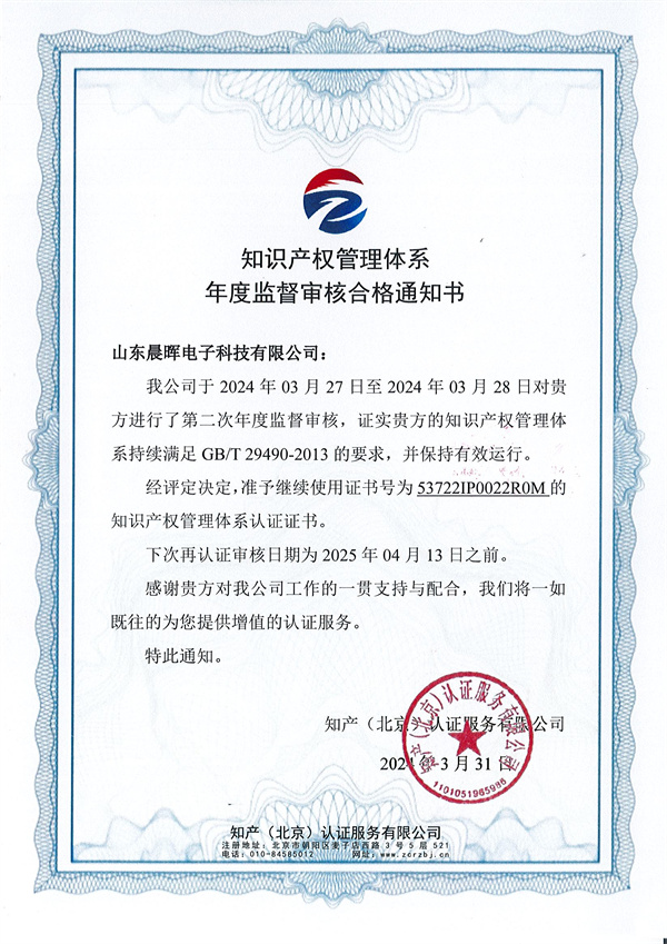2024年3月31日,玫德集團(tuán)旗下山東晨暉電子科技有限公司順利通過(guò)了知識(shí)產(chǎn)權(quán)管理體系年度監(jiān)督審核。這一認(rèn)證標(biāo)志著山東晨暉在知識(shí)產(chǎn)權(quán)管理方面邁出了堅(jiān)實(shí)的一步,進(jìn)一步在行業(yè)內(nèi)樹(shù)立了權(quán)威和信譽(yù)。