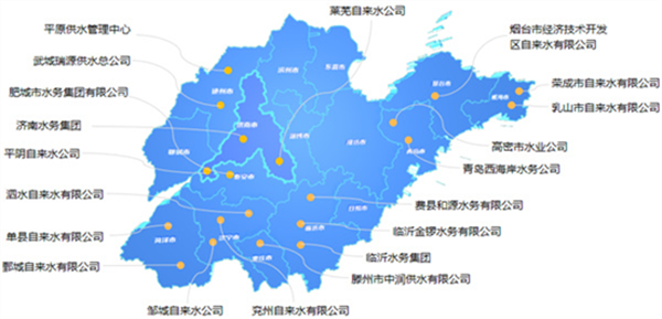 合作的水務公司/自來水公司已覆蓋全國12個省/直轄市,主要集中在山東、江蘇、湖北、貴州、四川、重慶和云南等地。